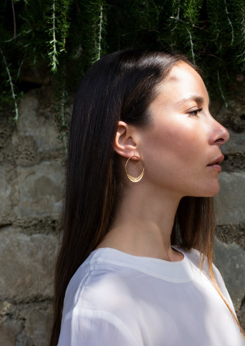 INFOThese earrings are realized weaving together two 18k gold threads. The perfect shape of the circle creates an elegant and minimal glaze on your ear.